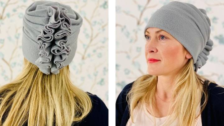 Если вы любите необычные головные уборы, то идея ниже наверняка приглянется вам! Это стильная женская шапка со складками в качестве декора. Шьётся довольно быстро: всего 10 минут, и у вас на руках модная вещица! С работой по силам справится каждой рукодельнице.