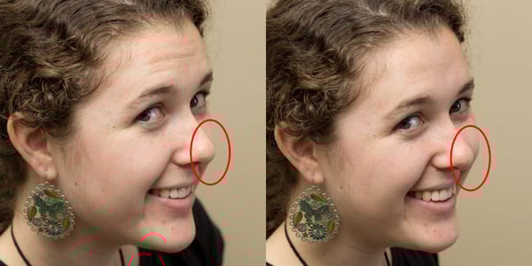 Если повернуться слишком далеко это «ломает» естественный изгиб лица. Создается эффект «пиноккио» и удлиняет нос. Вы можете избежать этого, попробовав немного повернуться.