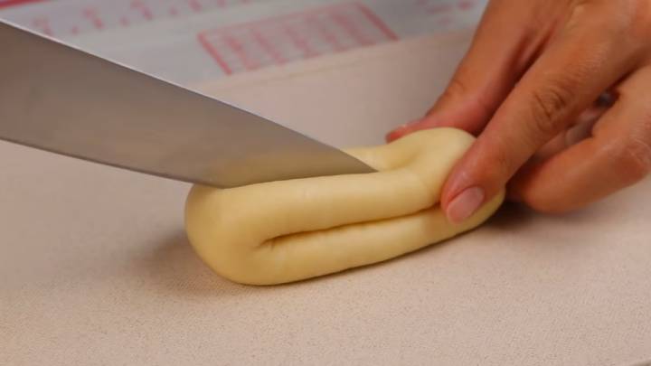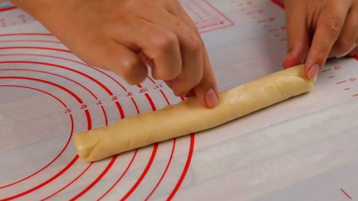 [Еда без Труда] Ольга Мирошниченко/youtubeСкрутите прямоугольник по длине в трубочку. Её сложите пополам, края защипните.