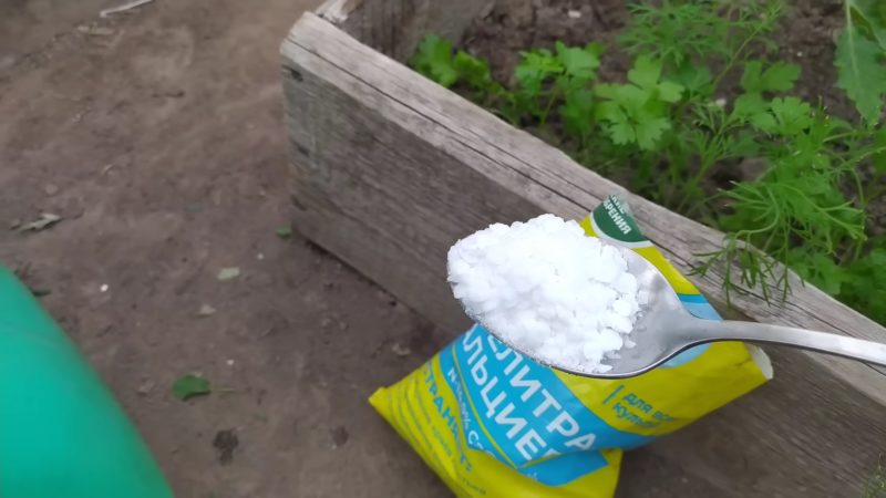 Для приготовления удобрения разведите столовую ложку кальциевой селитры в 10 литрах воды.