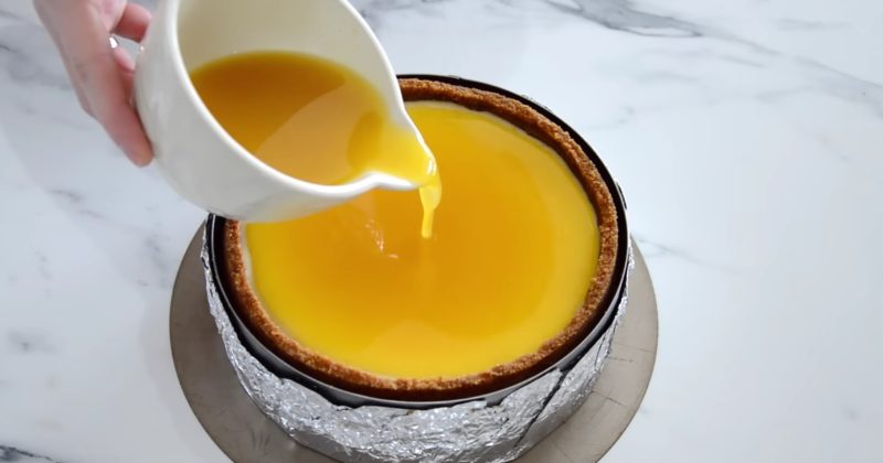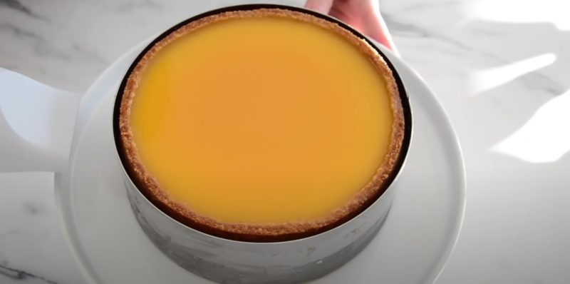 Залейте чизкейк апельсиновым желе и поставьте в холодильник до полного застывания верхнего слоя.