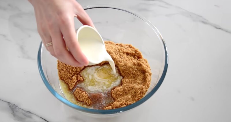 Для приготовления основы чизкейка можно использовать покупное имбирное печенье, либо заранее приготовленное домашнее имбирное печенье. Измельчите печенье до состояния мелкой крошки, добавьте к нему растопленное сливочное масло и молоко и хорошо перемешайте.