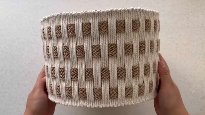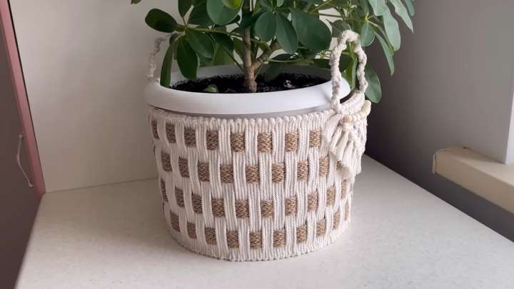 Готовую поделку можно использовать как декоративную корзину или красивое кашпо под цветы!