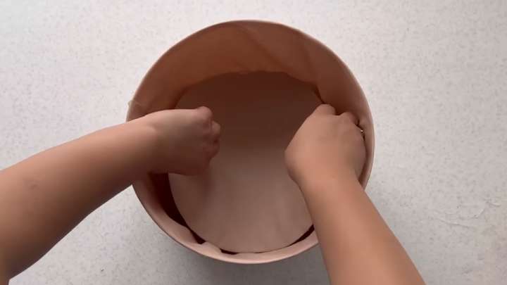 У ведра отрежьте ободок с ручкой. Также вырежьте ободок у пластиковой крышки.