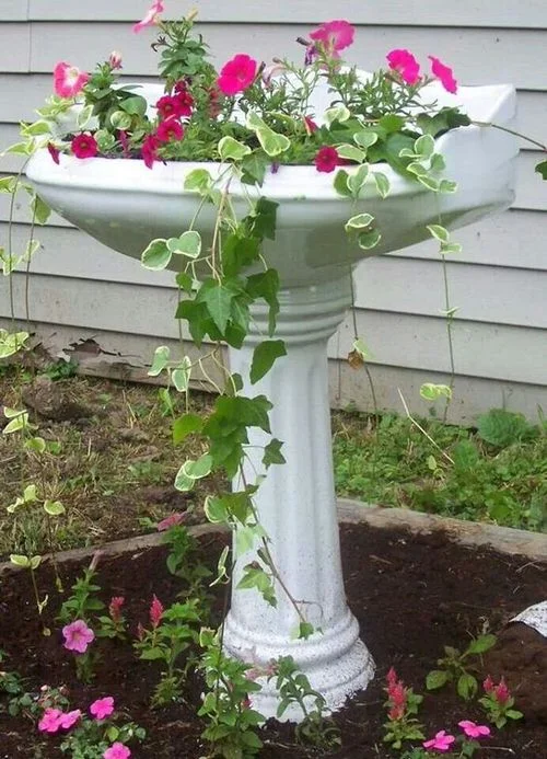 Но есть и те, кто заходит слишком далеко и выбирает для своих растений совершенно странные и нелепые горшки. Удивительно, но есть люди, которые решили оформить сад кашпо из старого унитаза, раковины или ванны, выставить композицию из горшков, сделанных из старых кукол, обуви и одежды. Бывают даже цветоводы, которые превращают в клумбы мебель и старые транспортные средства.
