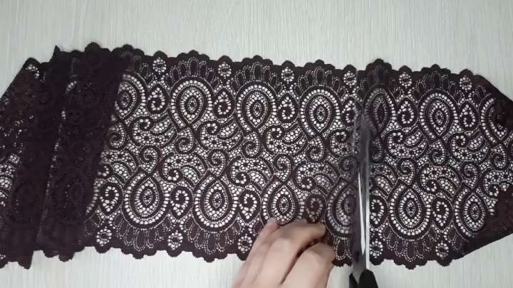 Отнимите от получившейся цифры 10 % и отрежьте кусок широкого кружева соответствующей длины.
