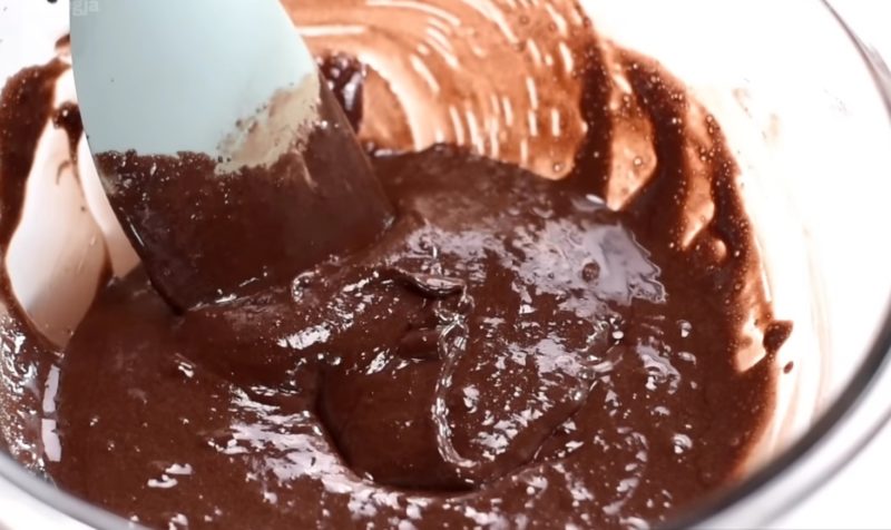 Взбейте яйцо с сахаром, солью и ванилью до получения белой однородной массы. Добавьте к ингредиентам какао и сухое молоко и замесите однородное жидкое тесто.