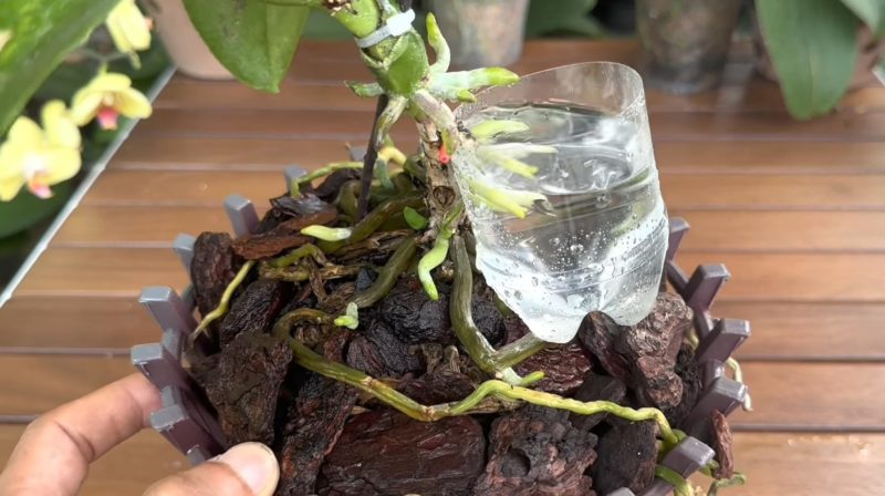 Полив орхидеи следует прекратить за 5 дней до начала процесса омоложения. Перед началом процедуры поместите горшок с орхидей в емкость и залейте водой. Оставьте растение на 30 минут.