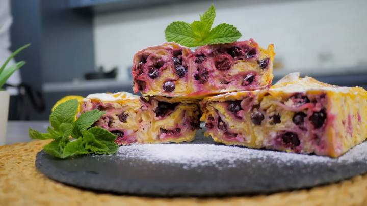 Восхитительный пирог с творожной начинкой без теста! Берите любые ягоды и всё время получайте новую выпечку.