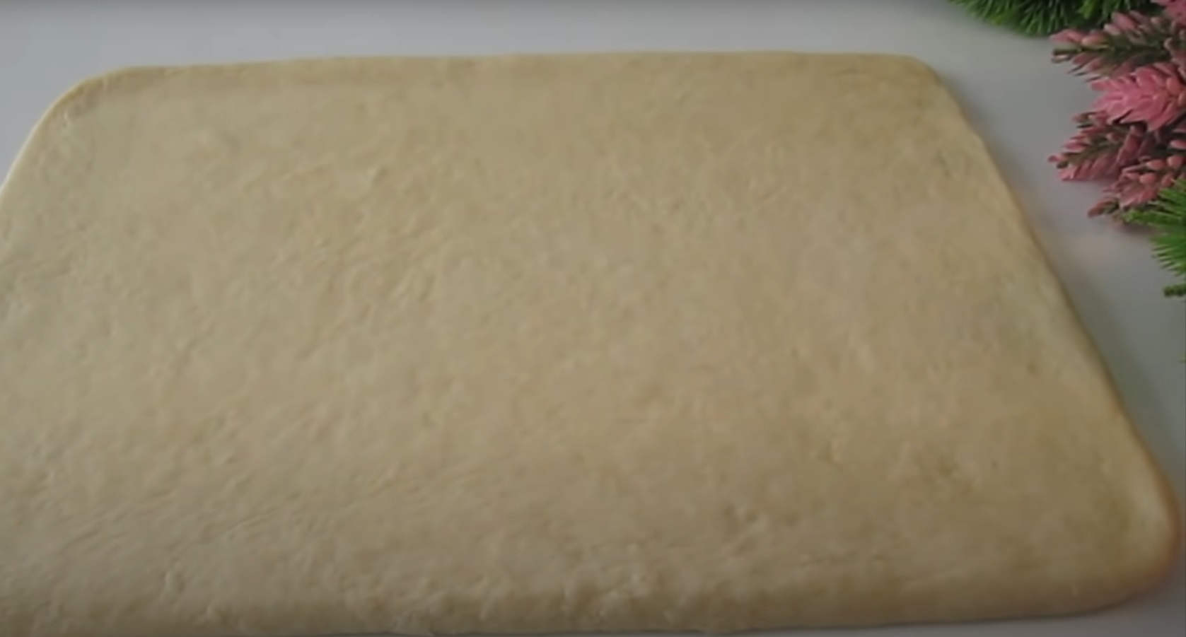Разделите тесто на 2 равных части, и раскатайте, чтобы получить прямоугольные пласты теста.