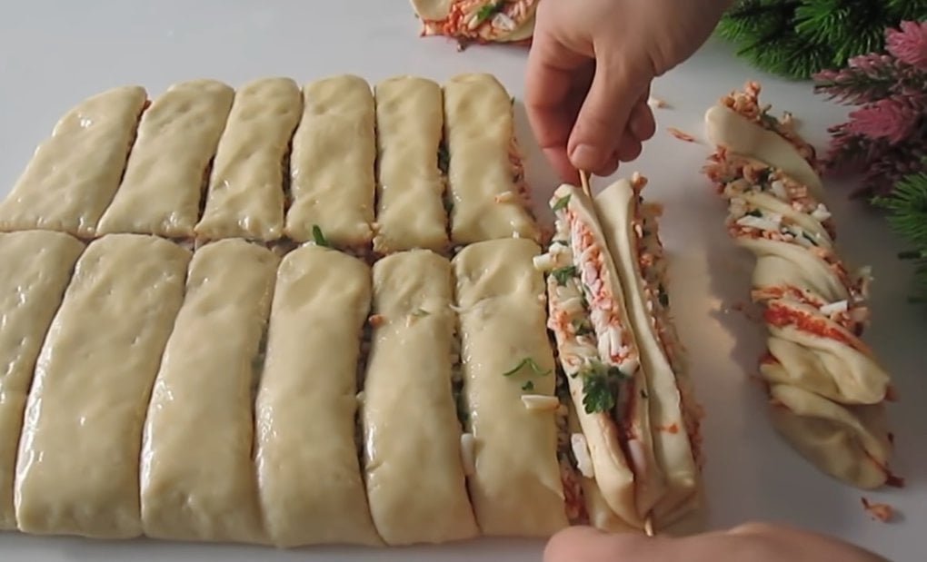Затем, держась за два конца, закрутите тесто, чтобы получить красивую заготовку.