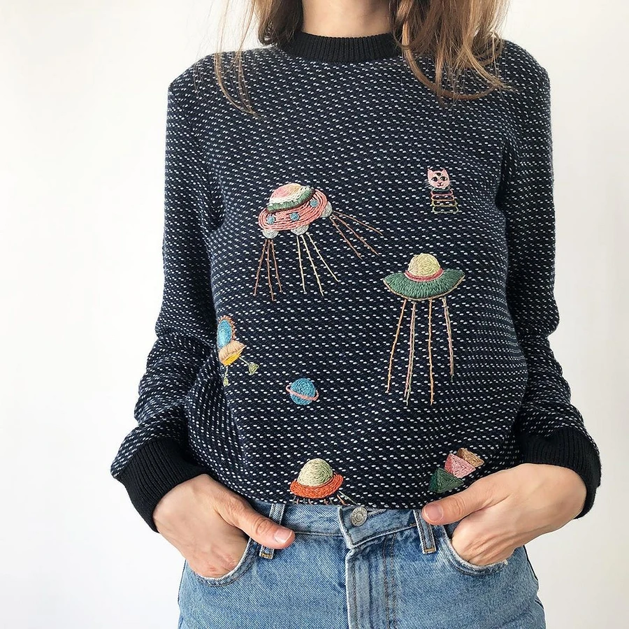 Придать скучной однотонной футболке, рубашке или кофте совершенно новый и оригинальный внешней вид невероятно просто. Достаточно лишь добавить на вещь вышивку. При чем вышивка может быть абсолютно любой, начиная от минималистичных крошечных картинок, и заканчивая полноценными картинами и композициями.