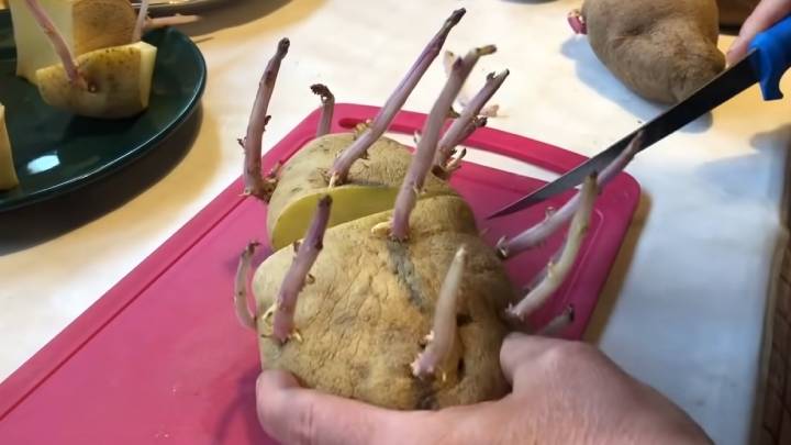 Вторая причина — это создание посадочного материала подходящего размера. Нередко клубни картофеля огромные, а семенного материала просто нет. Если просто посадить в землю огромную картошку, пусть и с ростками, то вы можете и вовсе лишить себя урожая!