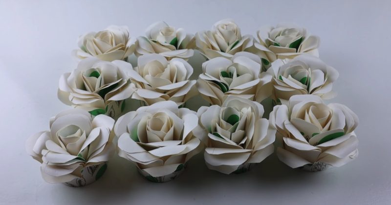 Все, что необходимо для работы — бумажные стаканчики, ножницы и клей. Для изготовления одной розы понадобится 2–2,5 стакана.