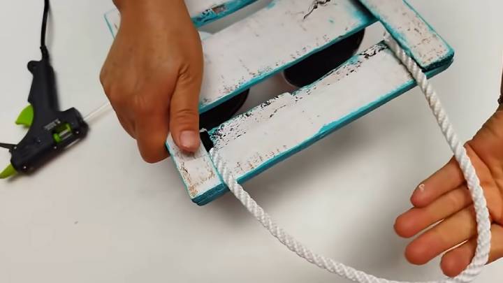 С обратной стороны приклейте канат. Также можно использовать любую верёвку.