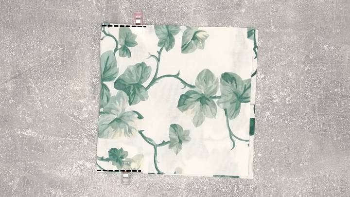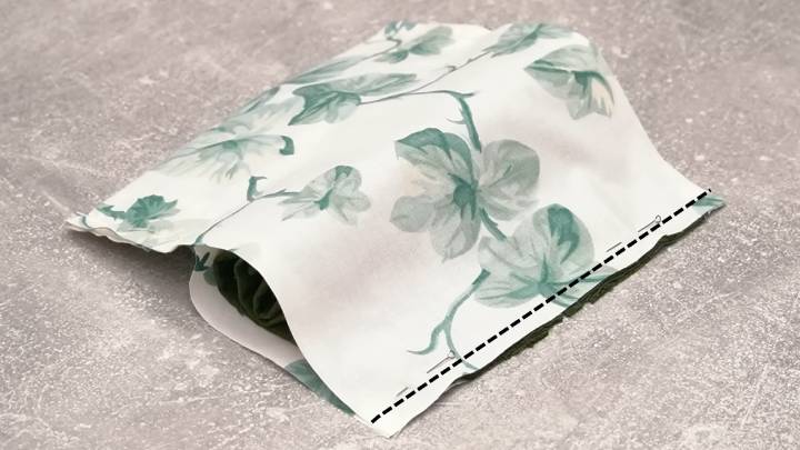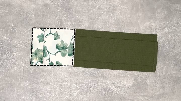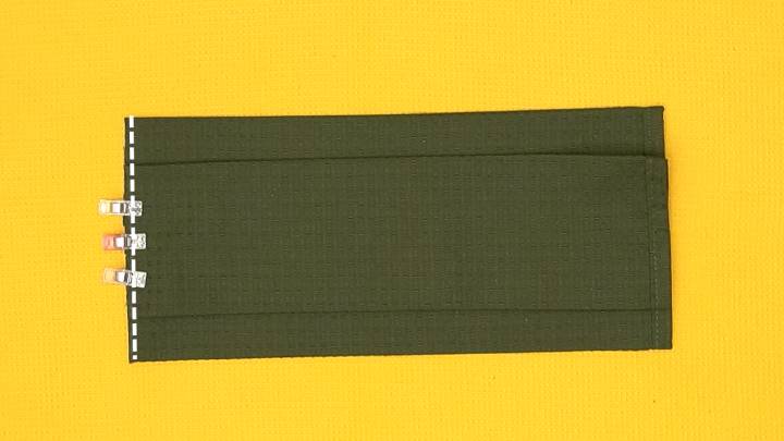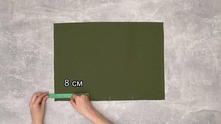 Также из ткани вырежьте прямоугольник 18*38 см. Определите середину по длине, приложите полоску, совместите края, сколите булавками и сшейте по бокам.