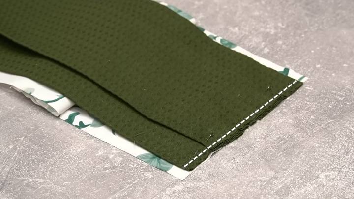 Совместите раскрытую вставку с полотенцем. Сшейте на машинке по краю.