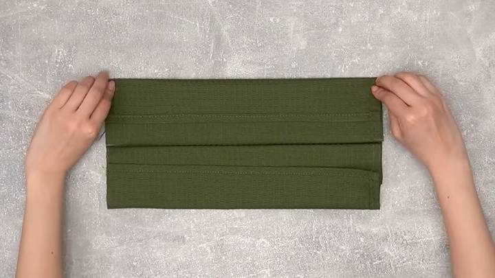 Возьмите либо готовое полотенце 35*50 см либо 70*50 см и разрежьте напополам по длине. Определите середину по длине, отступите влево и вправо по 10 см. Затем ещё раз, теперь от этих отметок, отступите влево и вправо уже по 8 см.