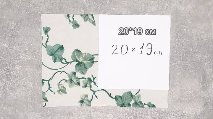 Теперь нужно сделать вставку, чтобы полотенце было удобно подвесить на ручку духовки. Вырежьте из ткани 20*19 см.