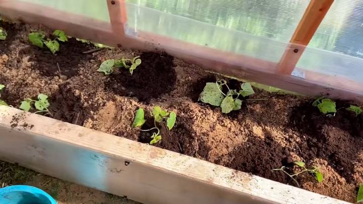 Из обрезной доски и оставшегося поликарбоната можно собрать внутри высокие грядки. Это недорого и практично! Такие грядки можно наполнить любым содержимым (по вашему усмотрению: ветки, картон, ботва, скошенная трава, торф). А через прозрачный поликарбонат хорошо видно, просохла почва или нет!