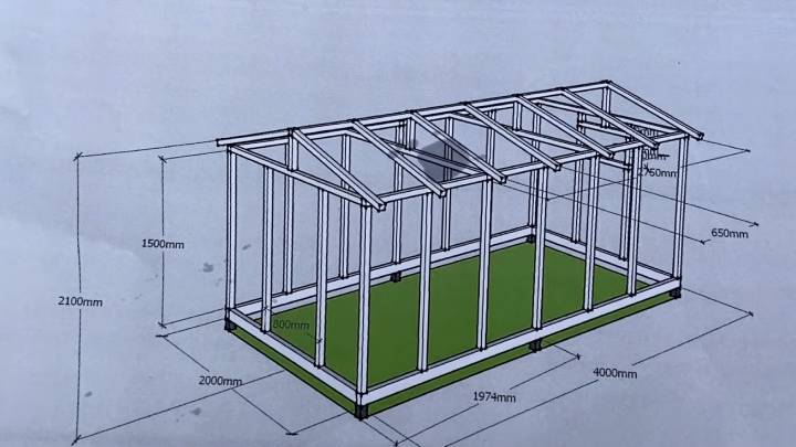 Теплицу хозяева возводят достаточно просторную — 2*4 м! В ней удобно ходить и выращивать лианы (те же огурцы). Схему можно посмотреть чуть ниже: