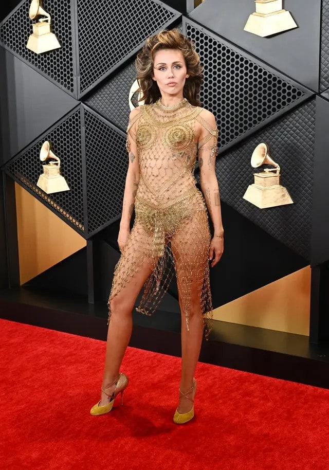 Майли Сайрус ошеломила прозрачным золотым платьем на церемонии вручения премии «Грэмми-2024»