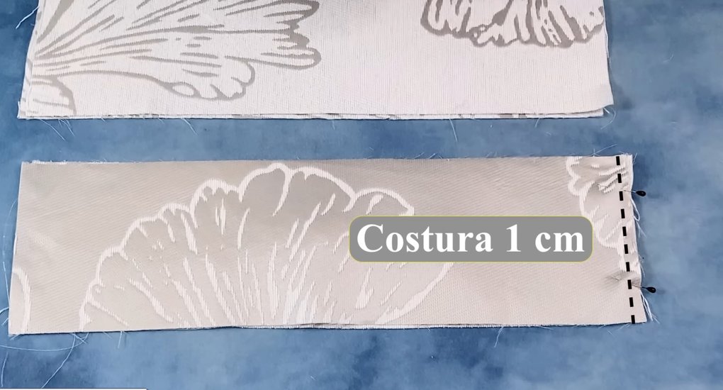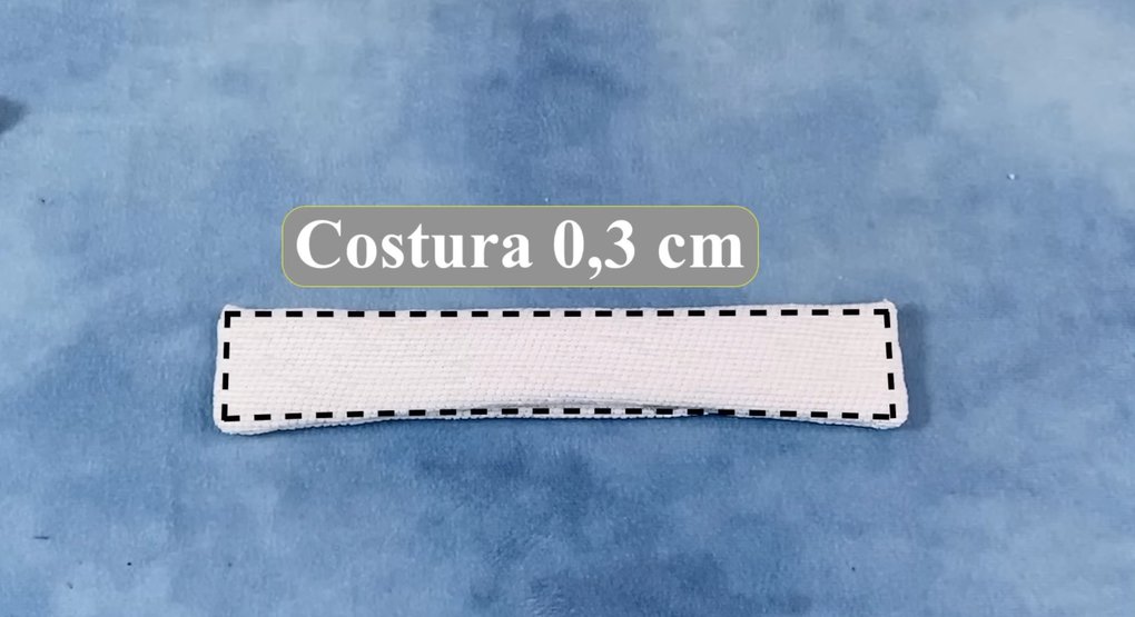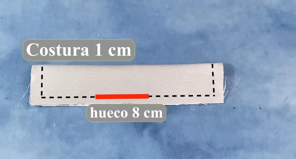 Меньший из кусочков ткани сложите пополам и проложите по краю машинную строчку, оставляя открытым небольшой участок для выворачивания.