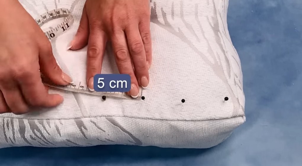 На расстоянии 2 см от края сделайте разметку по 5 см и повторите ее зигзагообразно на другой стороне от шва.