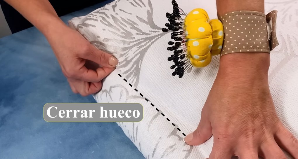Используя изогнутую иглу, прошейте подушку по намеченным линиям, в результате чего получится сделать красивый волнистый край.