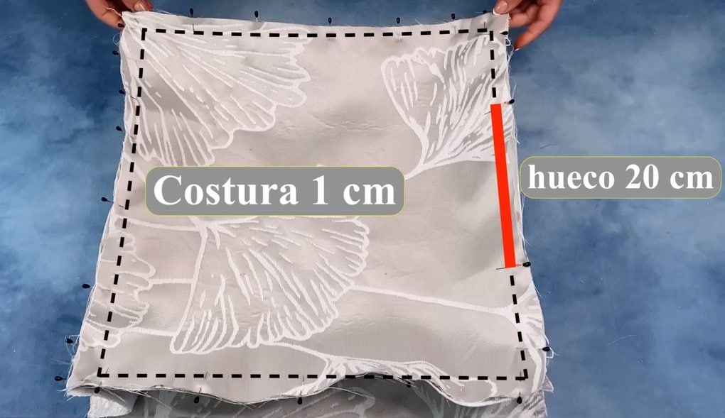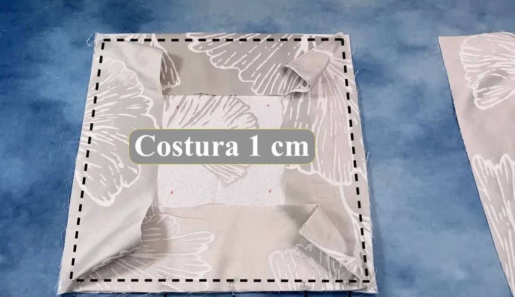 Повторите действие со вторым квадратным отрезом ткани, оставляя открытым небольшой участок для выворачивания и набивки.