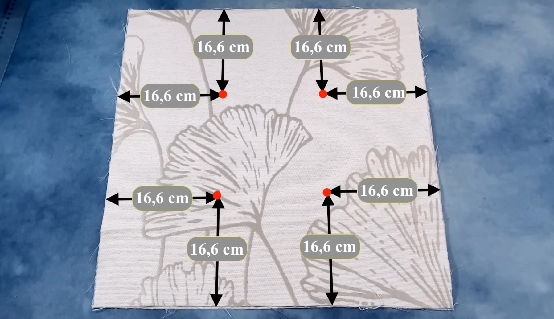 На деталях размером 50 см на 50 см разметьте точки, по которым будет выполнена стежка.