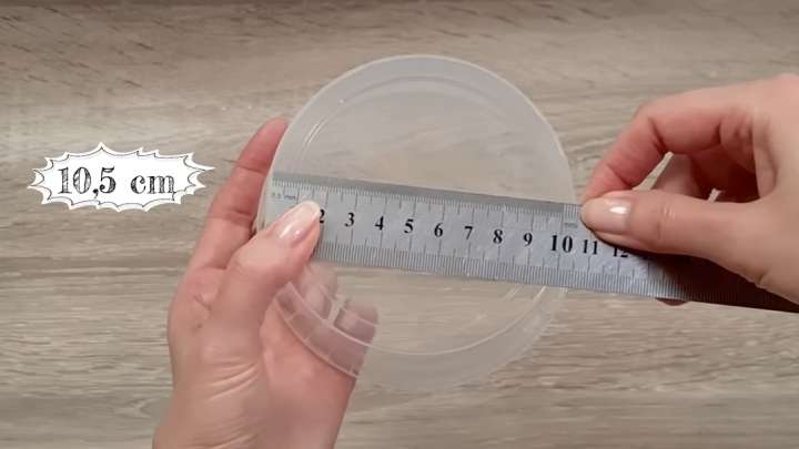 Возьмите контейнер высотой 6 см и диаметром 10,5 см. Отрежьте неровный верх с ручкой, если таковой имеется.