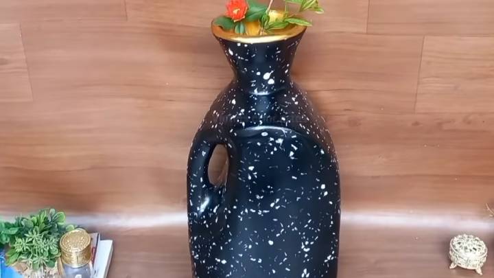 Можно использовать как вазу, в том числе для искусственных цветов. Очень красивая самоделка из пластиковой бутылки из-под геля для стирки или кондиционера для белья!