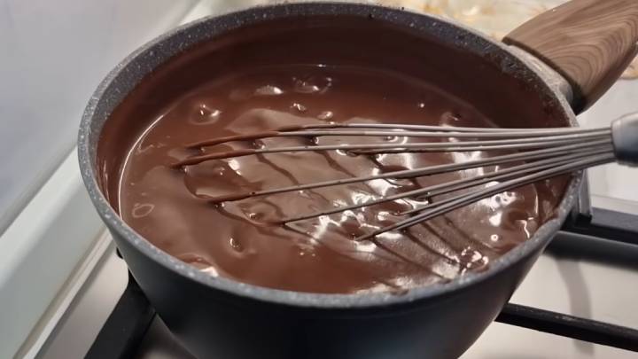 К приготовлению этого слоя необходимо приступать через 1 час, когда все предыдущие слои стабилизируются. Это ганаш в простом варианте!