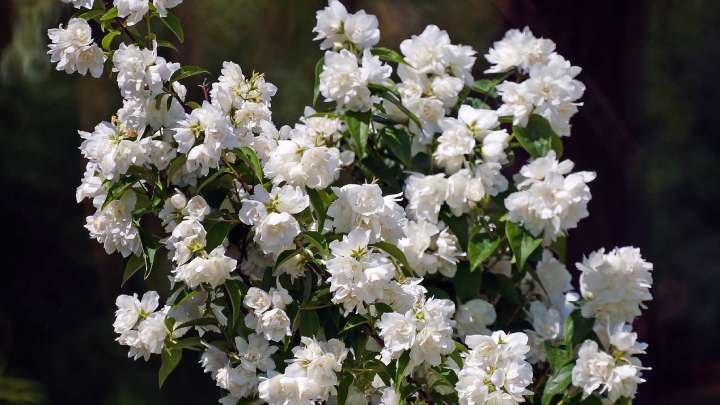 Чубушник, или садовый жасмин, — настоящее украшение участка! Кустарник устойчив к морозам. Для своего сада можно подобрать один из многочисленных сортов: например, невысокий, или с махровыми листьями. Цветёт садовый жасмин долго и обильно.