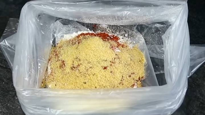 Переложите рыбу в пакет. Снова закройте и хорошенько потрясите.