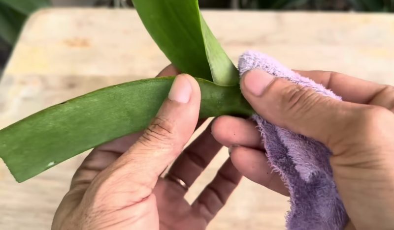 Промойте здоровую часть растения под проточной водой и аккуратно протрите мягкой тканью.