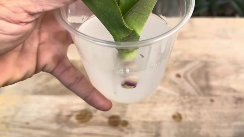 Профильтруйте полученный настой и протрите им листья орхидеи, используя ватный диск. Поместите ствол орхидеи в питательную воду и оставьте на 25-30 минут.