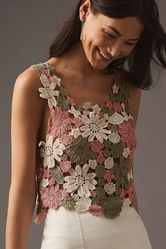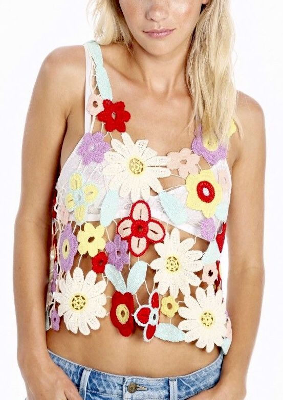 Из блоков можно создавать самые разные вещи, начиная от предметов быта и заканчивая стильными предметами гардероба. В этой статье пойдет речь о летних топах, собранных из цветочных блоков.