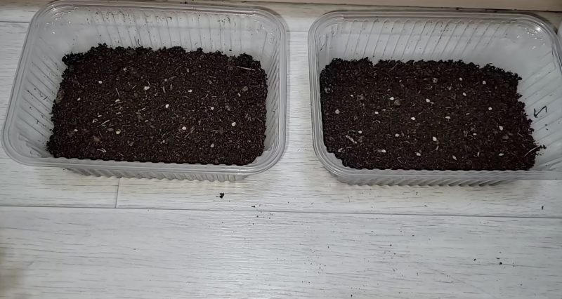 Лучший грунт для выращивания рассады — верховой торф. Для рассады подойдут пластиковые емкости объемом 0,5 л. без дренажных отверстий. Просто разложите семена на увлажненном торфе, опрыскайте их чистой водой из пульверизатора и присыпьте тонким слоем торфа.