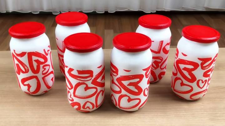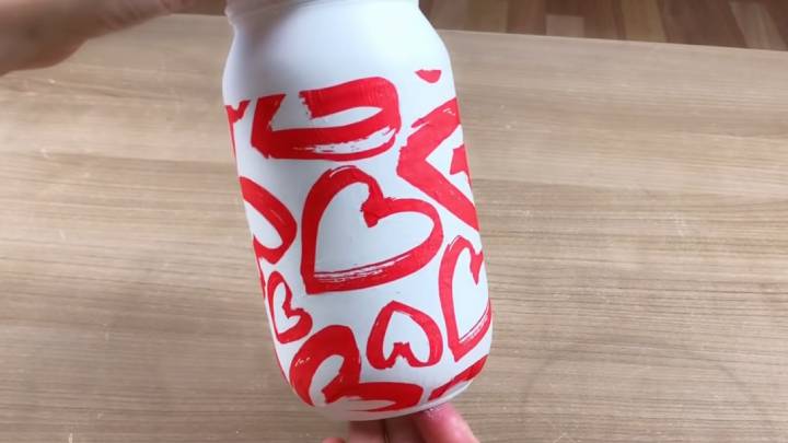 Теперь банки полностью покройте лаком (включая крышки). Удобно использовать аэрозольный.