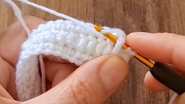 Таким же образом провяжите ещё 4 ССН (всего — 5). Получатся такие выпуклые столбики.