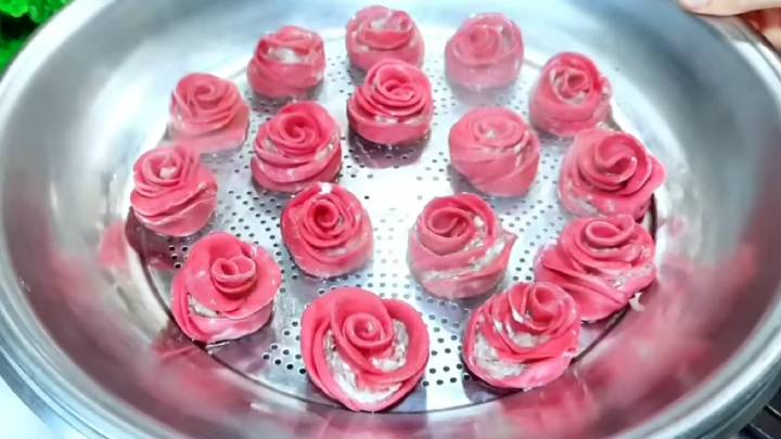 Окуните основание розочек в растительное масло и положите в пароварку или мантоварку. Накройте крышкой. Дождитесь закипания воды, уменьшите огонь и готовьте на пару 30 минут.