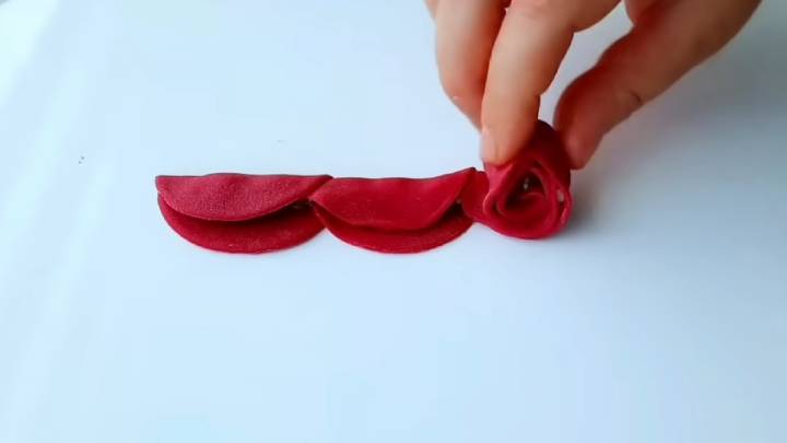 Сложите пополам по длине. Сверните все кружочки вместе. Получится розочка!