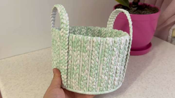 Чудесная, стильная корзинка из доступных материалов! В ней можно хранить разные нужные мелочи.