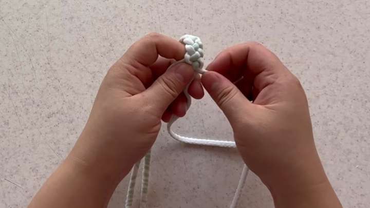 Возьмите ещё три полоски из коврика и обплетите ими толстую проволоку или провод. Согните и приклейте как ручки.