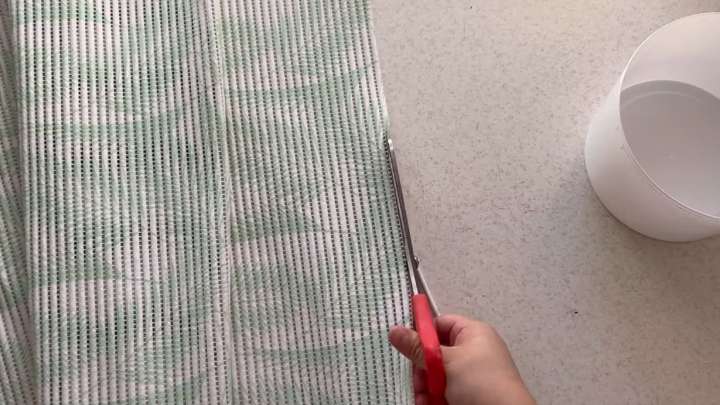 У ведёрка обрежьте выступающие края (ободок). Нескользящий коврик для ванной из вспененного ПВХ нарежьте на полосы.