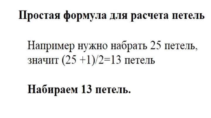 Поскольку количество петель увеличивается, как же точно рассчитать, сколько нужно набрать первоначально? Всё очень просто! Например, вы знаете, что в итоговом изделии требуется 25 петель. Добавьте к ним 1 петлю, чтобы получилось чётное число. И теперь его разделите напополам! Следовательно, первоначально необходимо набрать 13 петель.