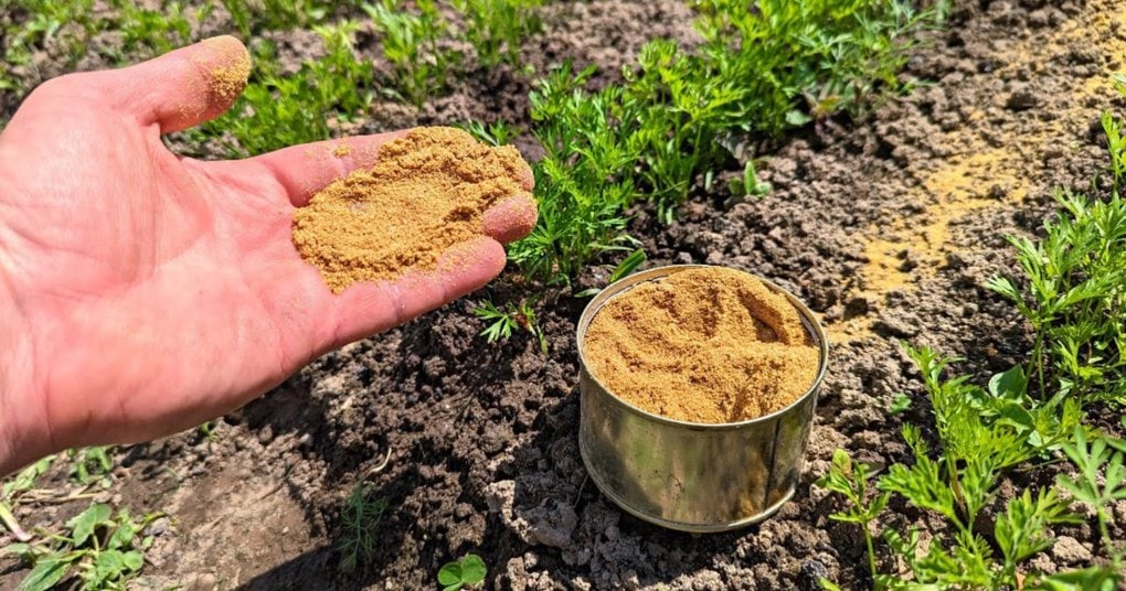 Первый ингредиент — горчичный жмых, который помогает сделать почву рыхлой и плодородной. Более того, при перегнивании горчичный жмых насытит почву азотом, гумусом и другими веществами, которые необходимы для активного роста и развития корнеплода. Горчичный порошок выступает и как натуральный инсектицид, который отпугивает морковную муху.