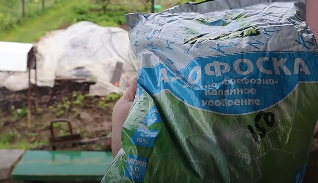 Второй компонент — Азофоска (азотно-фосфорно-калийное удобрение). Питательные вещества в этом удобрение находят в форме, которая легко усваивается растениями.